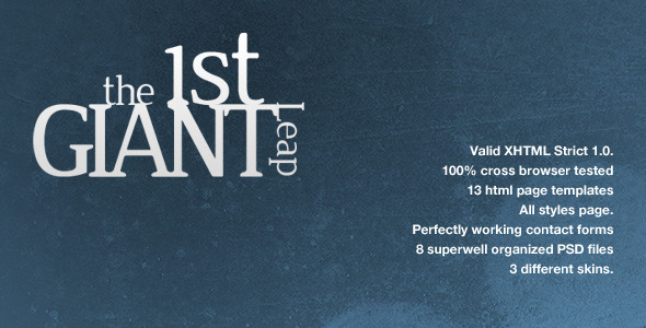 1stGiantLeap Template is an elegant solution for your personal portfolio or for your business website. A complete folder of well organized psd files is included to edit every single graphic element of the template.