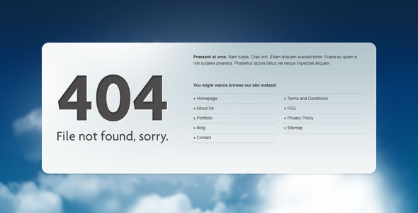 Beautiful 404 Error Page inspired by Idea Template. Site links included for better user experience.