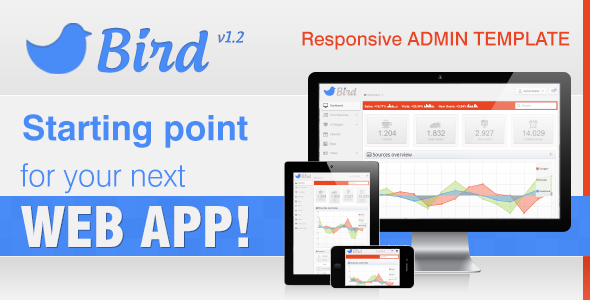 Bird is the starting point for your next web application. It`s suitable for any user interface or administration panel, for any devices – from desktop to mobile devices.