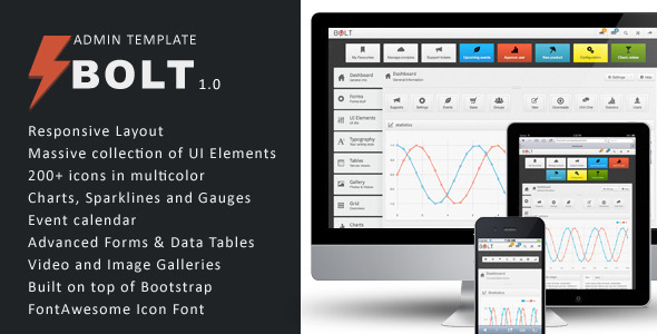 Bolt is a simple admin panel built on top of powerful twitter bootstrap framework and provides a neat responsive layout with a great collection of useful UI elements. Bolt includes FontAwesome and Google Plus icon library in multi color format.