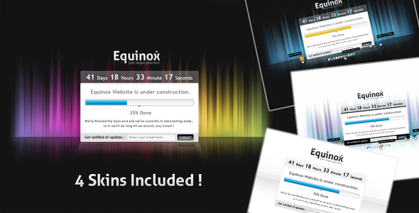 This is a slick and easy to use placeholder for your website. The logo is easy to change with your own and setting up the countdown timer as well as the progress bar is a breeze. The progress bar can automatically calculate (after you input the start and finish dates) the completed percentage or you can hardcode the percentage yourself.