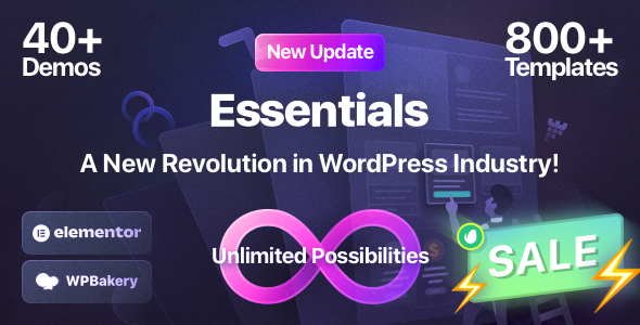 Essentials by PixFort is a multipurpose WordPress theme designed to help you build modern business, corporate, creative, and WooCommerce sites without code. It supports both WPBakery and the free version of Elementor, and comes with a large library of demos, templates, and premade pages.