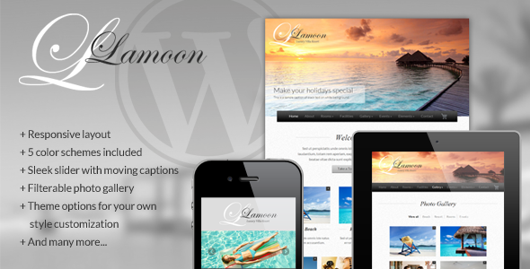 "replace": "Lamoon is a sleek, sharp and clean responsive WordPress theme for your resort and hotel business. For another option, consider the Lamoon - Responsive Resort and Hotel Template."