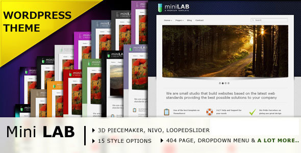 Mini Lab is a a highly-customizable premium WordPress theme that is good for business, blog, displaying products, portfolio, etc. It has ready pages to customize with and 15 styles to choose from. There are 3 slides to choose from namely, Nivo, 3D Slider and LoopedSlider + 1 Static image. The portfolio has two options to choose from, namely, Categorized Portfolio and Switch (Thumbnail only or Thumbnail with Description).