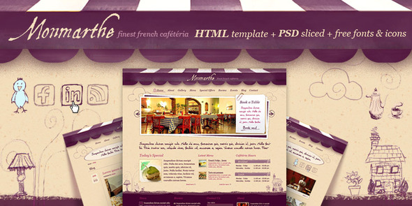 Monmarthe is a beautifully designed HTML Template for your cafe or restaurant. It is well organized looking theme for your culinary business, foodies, recipes, etc.