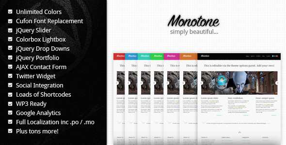 Mono-tone is a clean minimalistic Wordpress theme packed with everything you need and nothing you don’t!