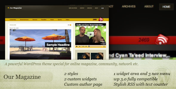 Our Magazine comes with 2 color variations, a slider for headline news, auto image resizing, advance theme option. It also provide a highly demand user link feed to allow your reader to submit news, example and .