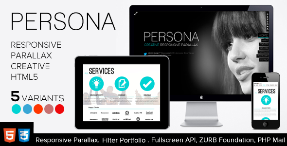 About Persona Persona, a simple but stunningly unique parallax template which is totally responsive and built with ZURB Foundation 3 – liquid layout. This theme is identical for modern creative websites such as a creative portfolio, personal website, designer’s profile etc. and it is for anything under the sun that needs a simple awesome parallax. The template is customizable to any level since it is powered by framework.