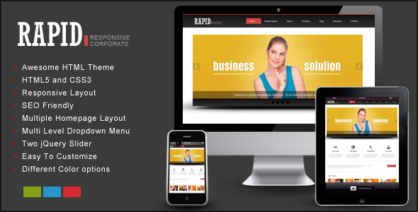 Rapid – Responsive HTML Template Powerful site template designed in a clean and minimalistic style. This template is very flexible, easy for customizing and well documented, approaches for personal and professional use. Rapid has been coded in HTML5 & CSS3 and jQuery. It has a solid flexible responsive layout that scales from 330px to 960px width. Follow me to be notified for future updates!