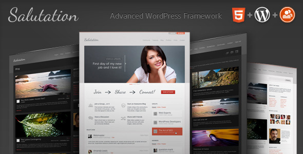 Salutation is a WordPress and BuddyPress theme. If you’re not familiar with BuddyPress, it’s a social network plugin for WordPress allowing your website to become a fully functional community portal. BuddyPress lets your users interract through groups, forums, friends, status updates, private messaging and a lot more.