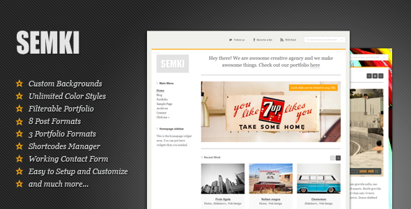 Semki is the perfect flexible theme for Personal, Business, Corporate, Portfolio and Blog built with latest Wordpress features. Post formats, unlimited colors, simple to use admin panel, easy to setup and customise and so on. Main menu position – the main menu can be located to the left (left in demo) or to the top.
