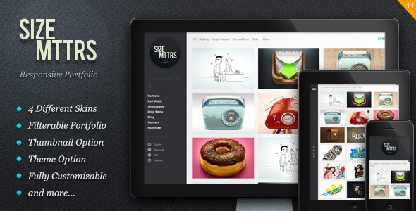 Size Mttrs is a responsive and unique theme designed for Designers, Artists, Photographers, etc, who want to show their work from a wider view, but adapting it to any device. All your content will adapt to any screen, wide screen, laptop, tablet and smartphone.