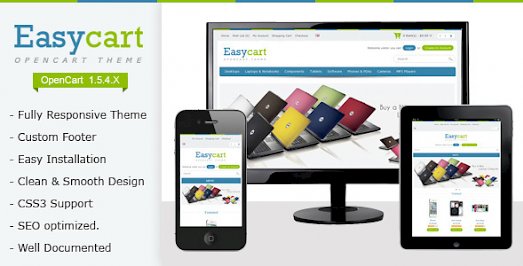 Easycart is a simple, easy and responsive to use OpenCart theme for any kind of store.100% OpenCart 1.5.4.x / 1.5.3.x / 1.5.2.x / 1.5.1.x compatible!