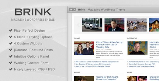 Brink is a premium magazine WordPress theme, ideal for websites publishing many articles across multiple categories. The theme uses dropdown menus, featured carousels and post thumbnails in …